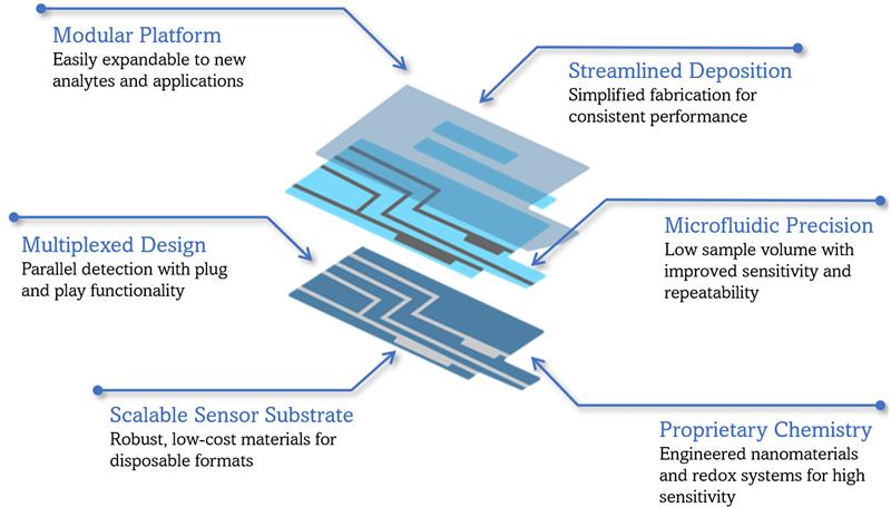 The platform is being developed as a cartridge-based system integrating sample handling, incubation, and electrochemical detection within a compact analyzer. This approach is intended to enable quantitative testing from small sample volumes obtained via minimally invasive sampling.
